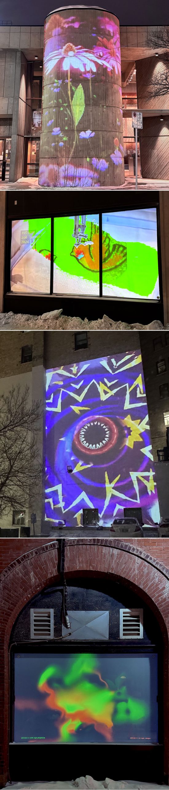 For a fourth year, Manufacturing Entertainment curated and produced three large-scale projections for Lights on the Exchange, an outdoor winter art festival in the Exchange District of Winnipeg. The 2026 festival runs from January 21 to March 21, 2026. Find out more